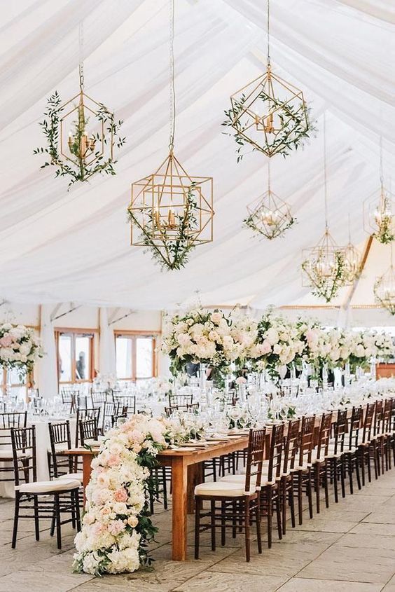 Deixar cair a vegetação permite que os casais incorporem uma grande variedade de flores e cores impressionantes em sua decoração de casamento, proporcionando uma aparência mais vibrante e animada.