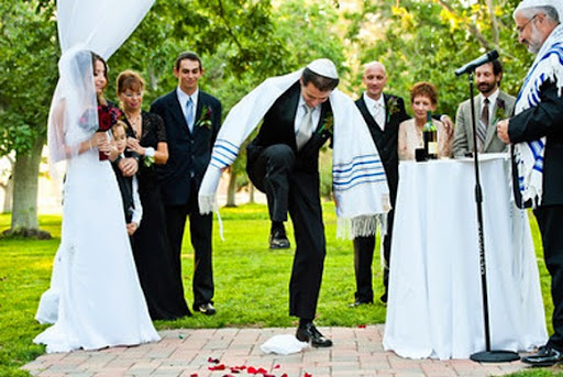 A quebra do vidro em casamentos judaicos, em que o noivo esmaga um copo com o pé no final da cerimônia, é uma tradição que remete a algumas lendas, mas não se sabe qual é a verdadeira origem. Alguns sustentam que o vidro quebrado simboliza a destruição do grande templo de Jerusalém no ano 70 dC, enquanto outros dizem que o vidro quebrado é um lembrete de que a alegria deve ser sempre moderada.